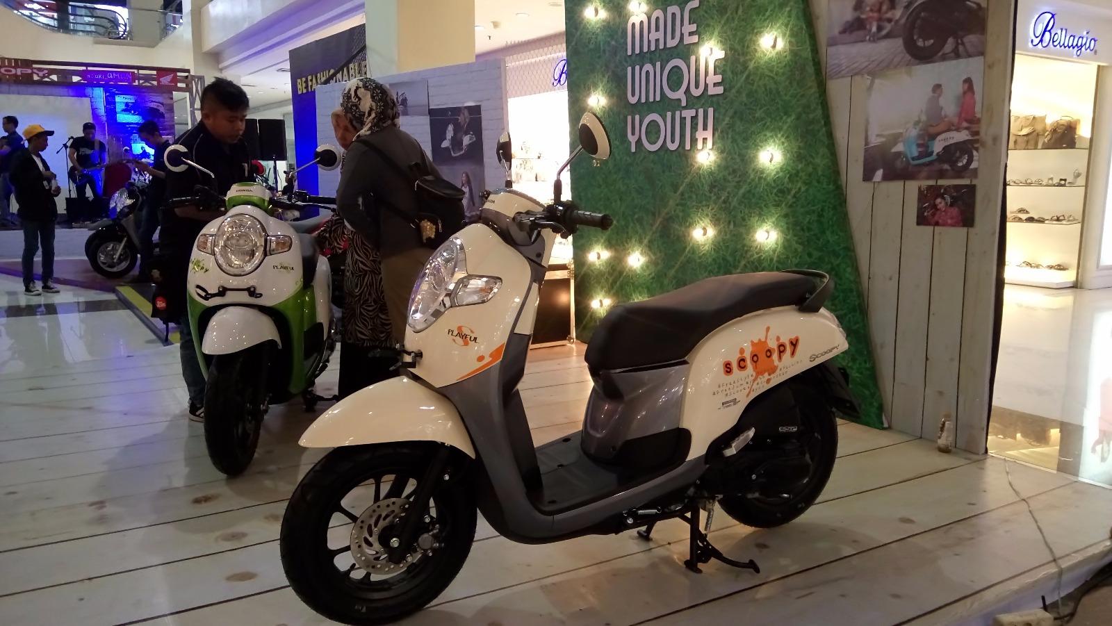 All New Scoopy hadir dengan desain terbaru yang lebih stylist, fashionable dan modern. All New Scoopy dilengkapi dengan berbagai fitur canggih dari Honda, seperti Combi Brake System, Idling Stop System serta dilengkapi dengan alarm anti maling. All New Scoopy hadir dengan 3 varian yakni Stylist, Sporty & Powerful yang mewakili dari kepribadian penggunanya. All New Scoopy dibandrol dengan harga Rp 17.700.000,- On The Road Sumatera Barat.