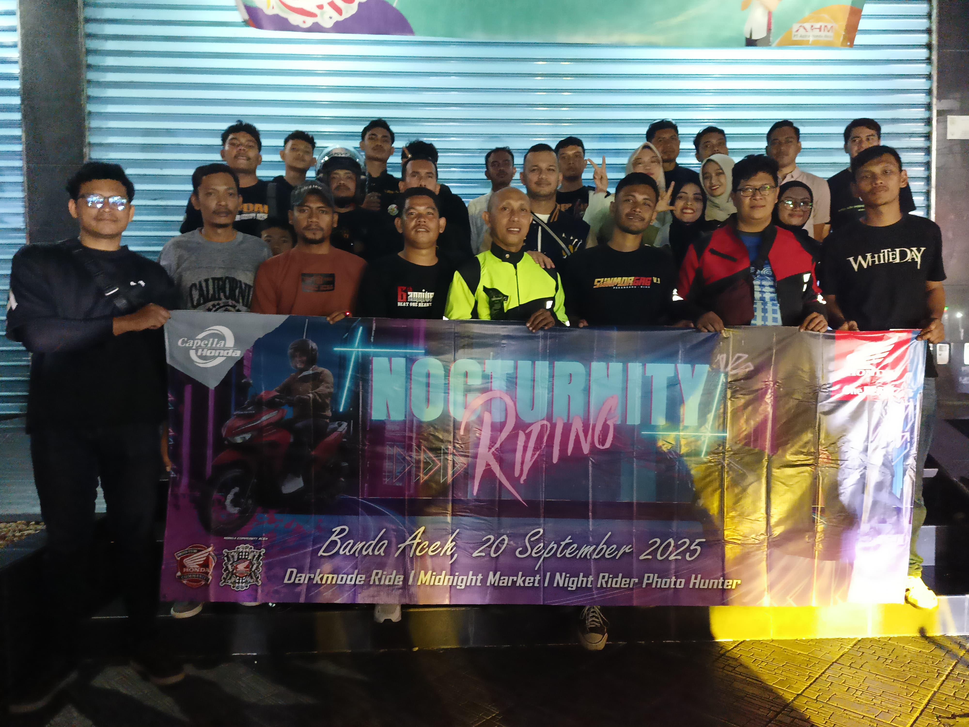PT Capella Dinamik Nusantara (Capella Honda) main dealer sepeda motor Honda menggelar kegiatan 'Nocturnity Riding'  yang merupakan kegiatan terbaru dengan menyuguhkan sensasi berkendara malam hari melalui city rolling dan dilanjutkan dengan gathering komunitas di Bang IS Cafe Banda Aceh, Sabtu (20/9).