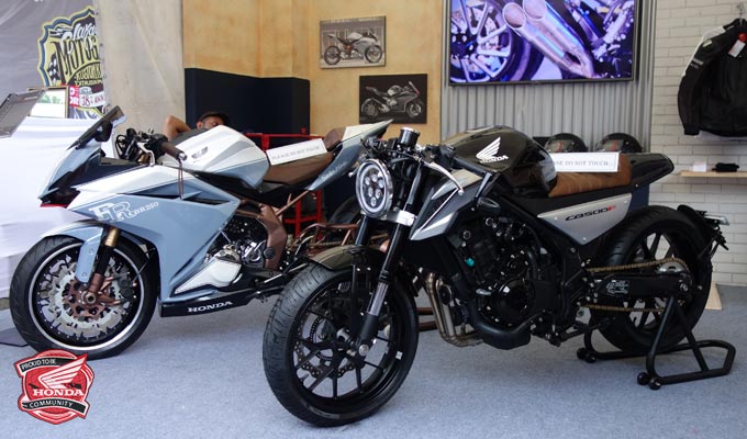 Dalam event yang dipersiapkan sebagai ajang kumpul penikmat kustom kultur ini, Honda membuka booth dan mendisplay dua unit motor kustom, yakni All New Honda CBR250RR dan Honda CBF500F.