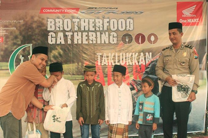 "Kegiatan ini bertujuan untuk mengenalkan sisi positif bikers honda kepada masayarakat. Kegiatan Honda Biker Soleh yang dikemas dalam acara brotherfood gathering ini selain mengisi kegiatan di bulan suci ramadhan juga untuk menumbuhkan keakraban dan silaturahmi antar bikers honda dengan kegiatan makan bersama santri pondok pesantren. Selain itu kami juga ingin mengenalkan varian striping baru supra gtr 150 kepada masyarakat Surabaya dan Gresik " kata Fariz Hadi selaku community development MPM.
