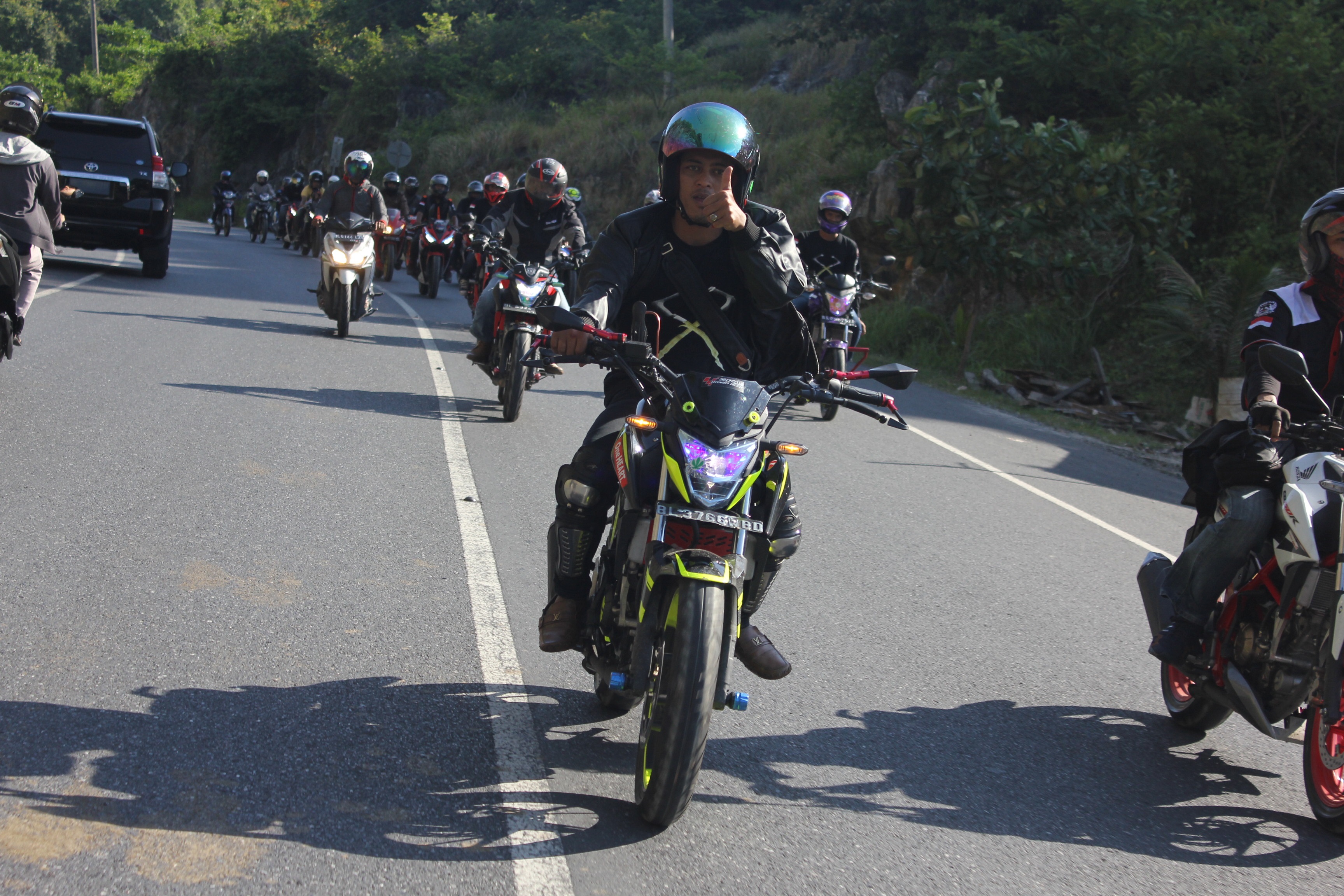 menuju Pantai Penyu dengan diikuti para bikers Honda Street Fire Club Indonesia (HSFCI) Banda