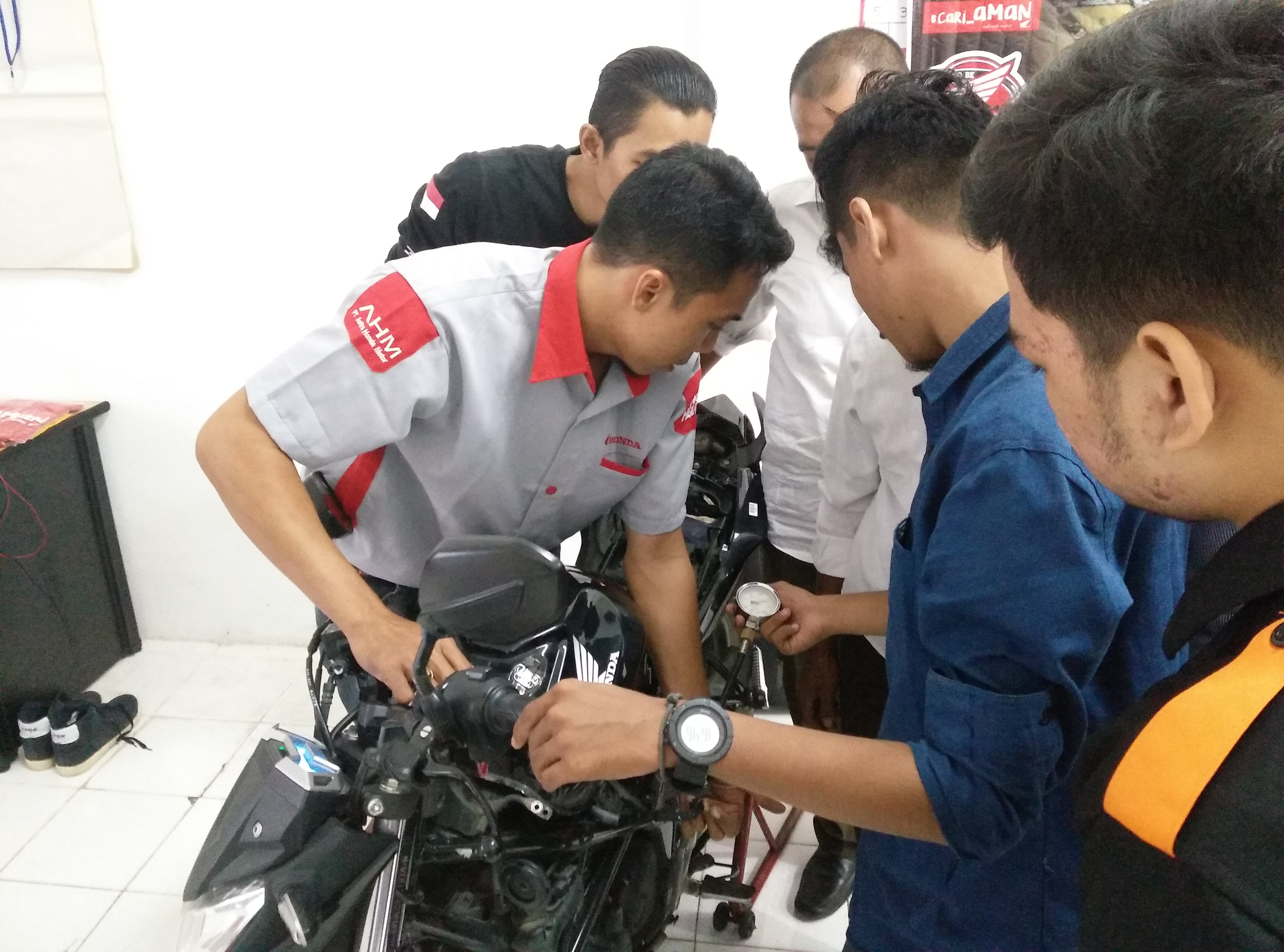 Tak hanya teori, dalam pelaatihan ini juga disediakan motor CB150R Streetfire sebagai alat praktek para bikers yang ingin mencoba praktek langsung mmemperbaiki mesin apabila terjadi kerusakan dengan kasus-kasus ringan. Kegiatan pelatihan ini ditutup dengan nonton bareng moto GP di D Taste Café.