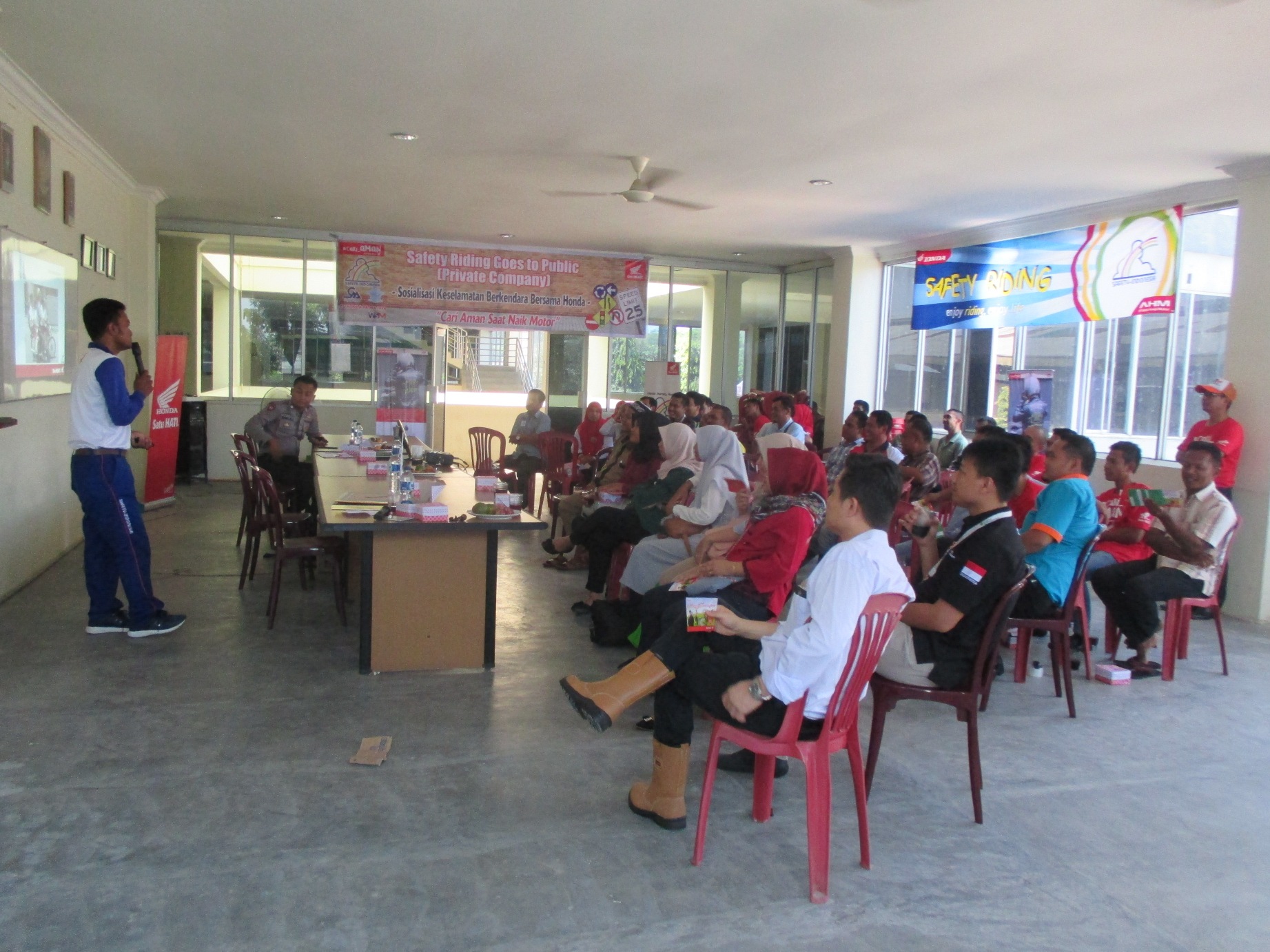 Sebanyak 50 orang peserta yang merupakan karyawan/ti PT. PP Pati Sari dan masyarakat setempat mendapatkan penyuluhan Keselamatan Bekendara yang langsung dipaparkan oleh Instruktur Safety Riding Capella Honda.