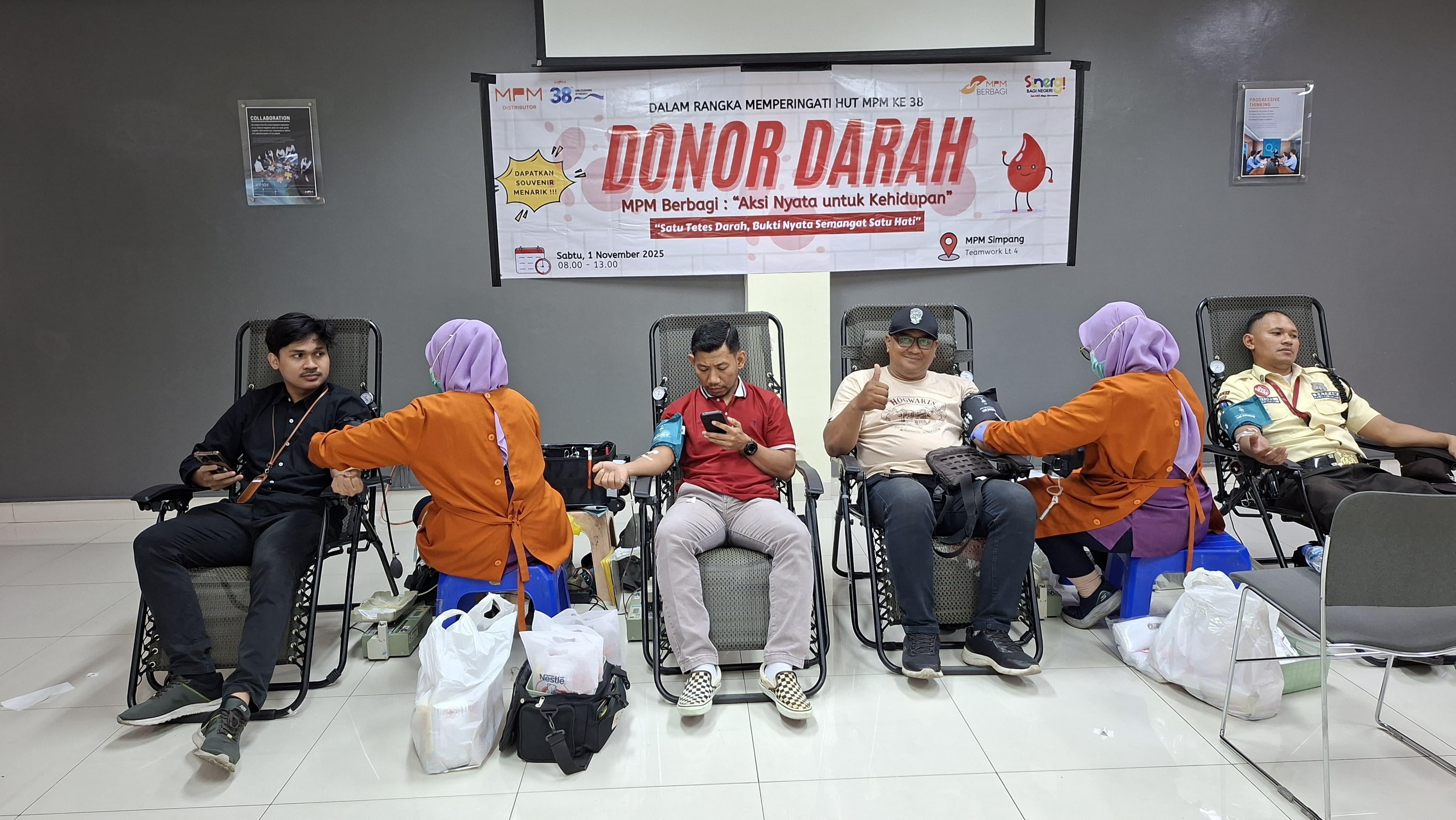 Rangkaian kegiatan sosial dalam rangka merayakan Hari Ulang Tahun (HUT) ke-38, PT Mitra Pinasthika Mulia (MPM Honda Jatim), distributor sepeda motor Honda untuk wilayah Jawa Timur dan NTT kembali menggelar aksi donor darah dalam program MPM Berbagi.