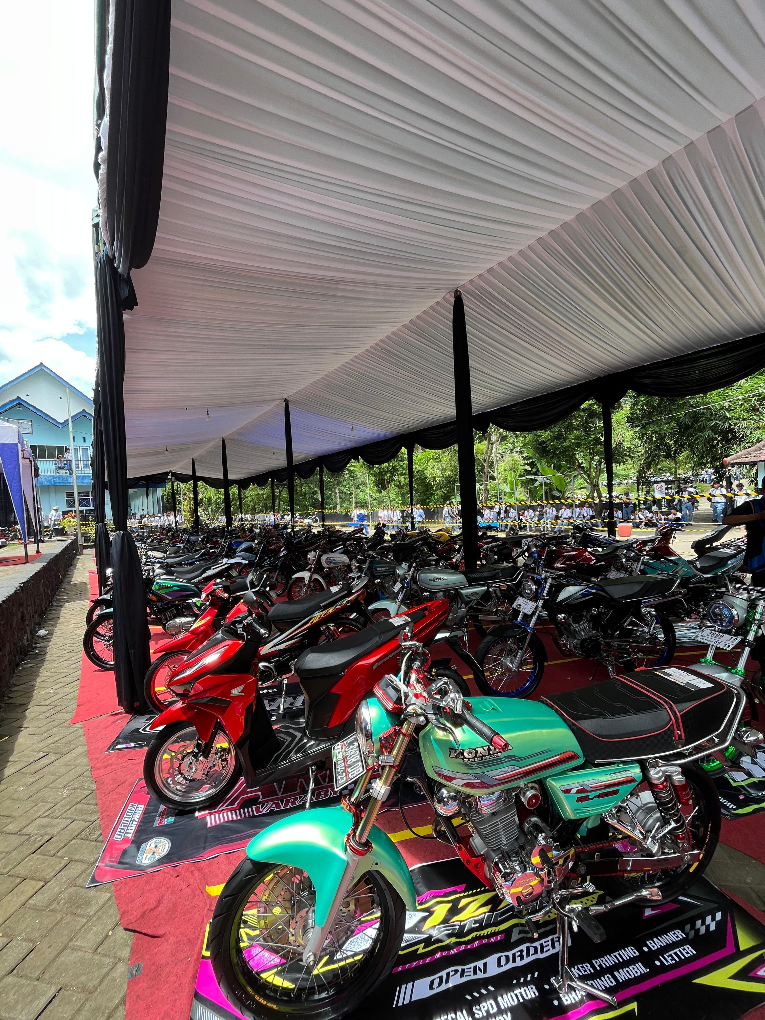 Sebanyak 140 unit sepeda motor modifikasi karya siswa ditampilkan dalam kegiatan yang berlangsung selama dua hari, 15–16 Desember 2025.