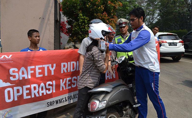 Kegiatan kampanye safety riding ‘turun jalan’ ini tidak hanya dilakukan oleh tim SRP, namun juga menggandeng Dikyasa Polres Metro Tangerang Kota dan 60 orang pelajar SMKN 5 Kab. Tangerang. Kampanye dengan mengusung tema ‘Safety Riding Campaign Operasi Keselamatan 2019’ digelar pada salah satu ruas jalan terpadat di wilayah Tangerang, Jatiuwung, Senin (22/07).