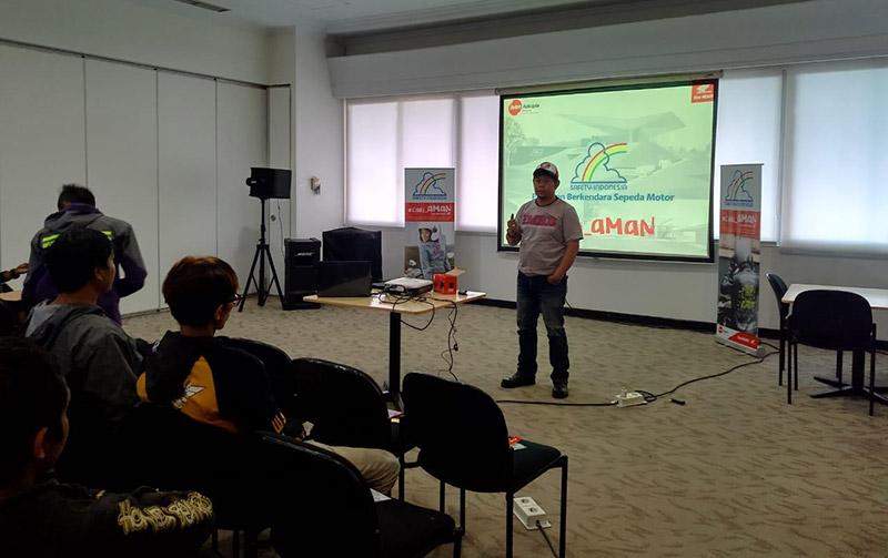 Sebelum melakukan praktek teknik berkendara yang baik terlebih dahulu para peserta mendapatkan berbagai materi di kelas tentang safety riding.