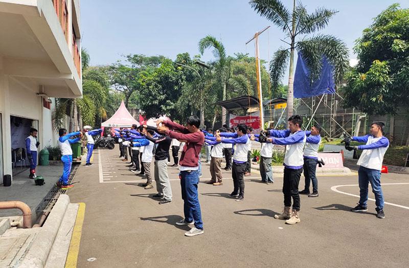 Setelah pembekalan materi para bikers dari berbagai klub dan komunitas diberikan pemanasan dengan senam kebugaran agar para pengendara bisa menjaga stamina tubuhnya yang semakin fit disaat berkendara.