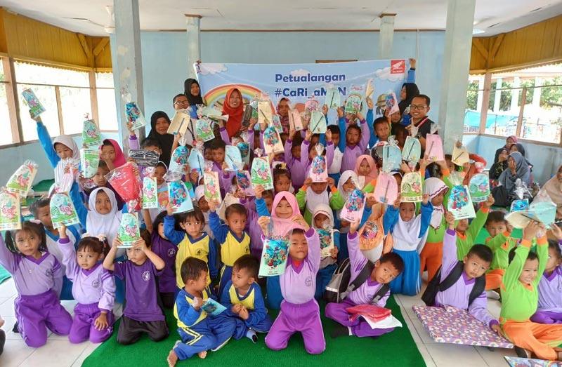 Mengusung tema 'Petualangan #Cari_Aman', sebanyak 75 siswa siswi TK Flamboyan Pagaruyung begitu antusias menyimak pemaparan dari Instruktur Safety Riding Capella Honda Riau, Steven, Sabtu 14 Maret 2020.