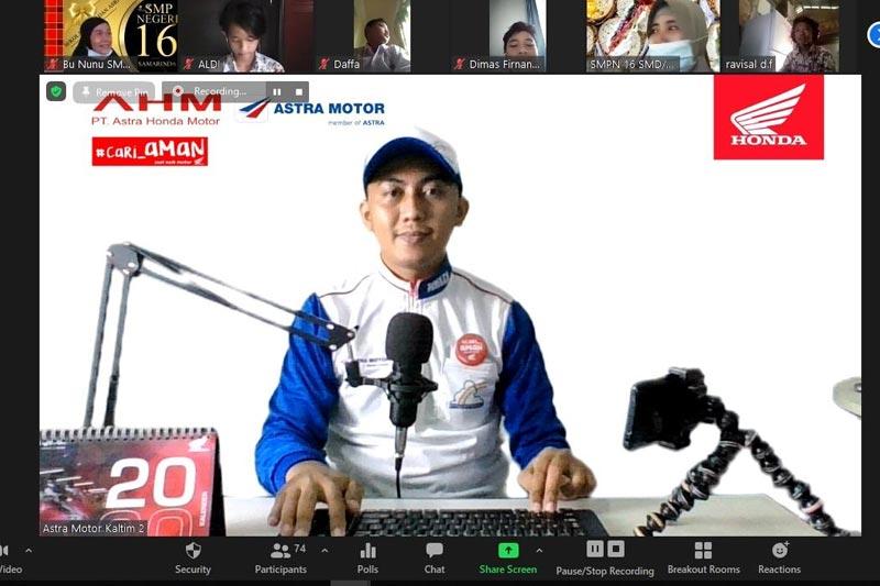 Biasanya kegiatan ini dilakukan di lapangan sekolah dan langsung dipraktekkan peserta, namun untuk sementara kegiatan dijalankan secara online dan tetap menyenangkan. Astra Motor Kaltim 2 hadir melakukan edukasi safety riding dengan target peserta Pelajar SMP dan SMA/SMK Sederajat. Kegiatan ini dilakukan secara online melalui aplikasi zoom, Jumat (20/11).