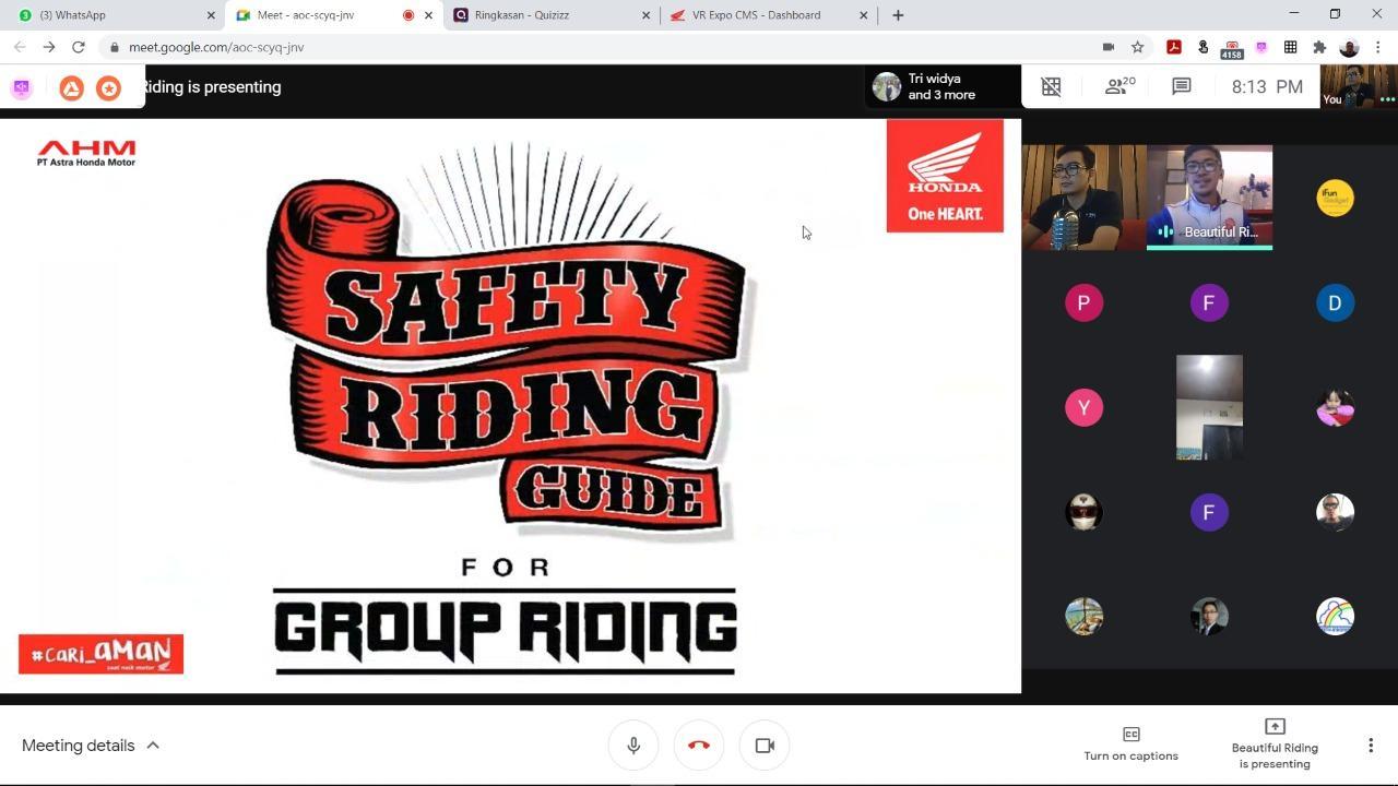 Evaluasi peserta: menanyakan kondisi peserta touring terutama kesehatan setelah perjalanan jauh